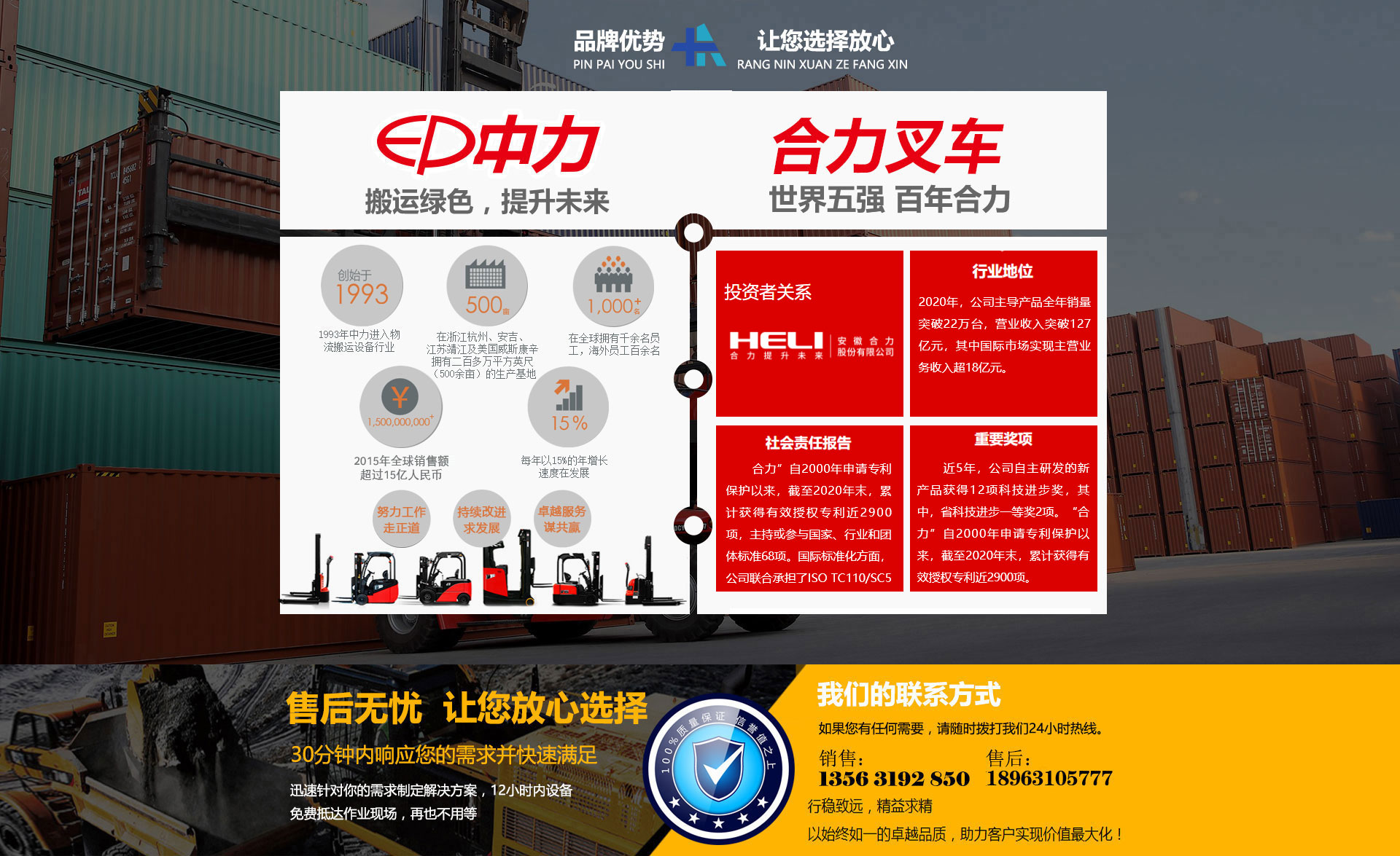 中力公司自1993年開始進入現代物流設備制造業,是專業從事叉車及倉儲設備的全球性制造企業。中力以產品技術創新,不斷滿足客戶定制要求而先于同行業。 榮獲德國紅點設計大獎及美國、中國數百項專利,并因此得到了百事可樂、可口可樂、沃爾瑪、特斯拉、德邦等數百家全球500強企業及國內物流龍頭企業的青睞。 ......